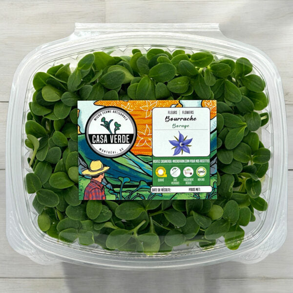 Chez Casa Verde Microfarm , nous cultivons des micro-pousses de bourrache pour mettre en valeur la texture juteuse de leurs tiges, leur croquant et leur saveur vive et rafraîchissante — récoltées à maturité optimale pour une précision culinaire maximale.