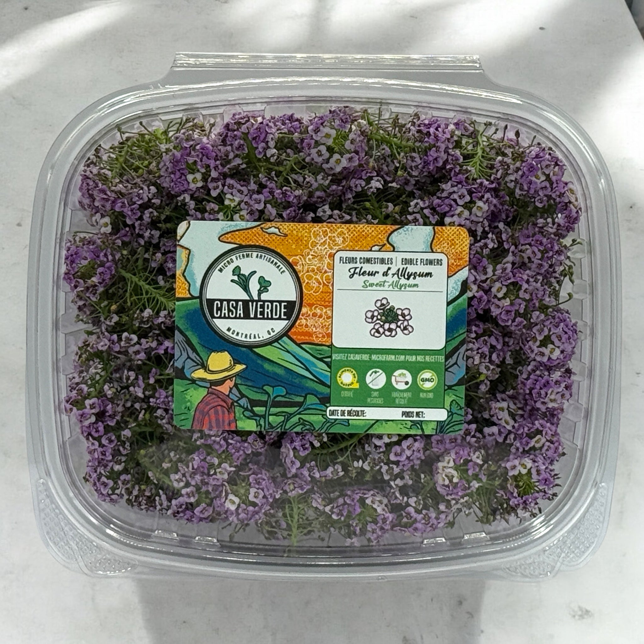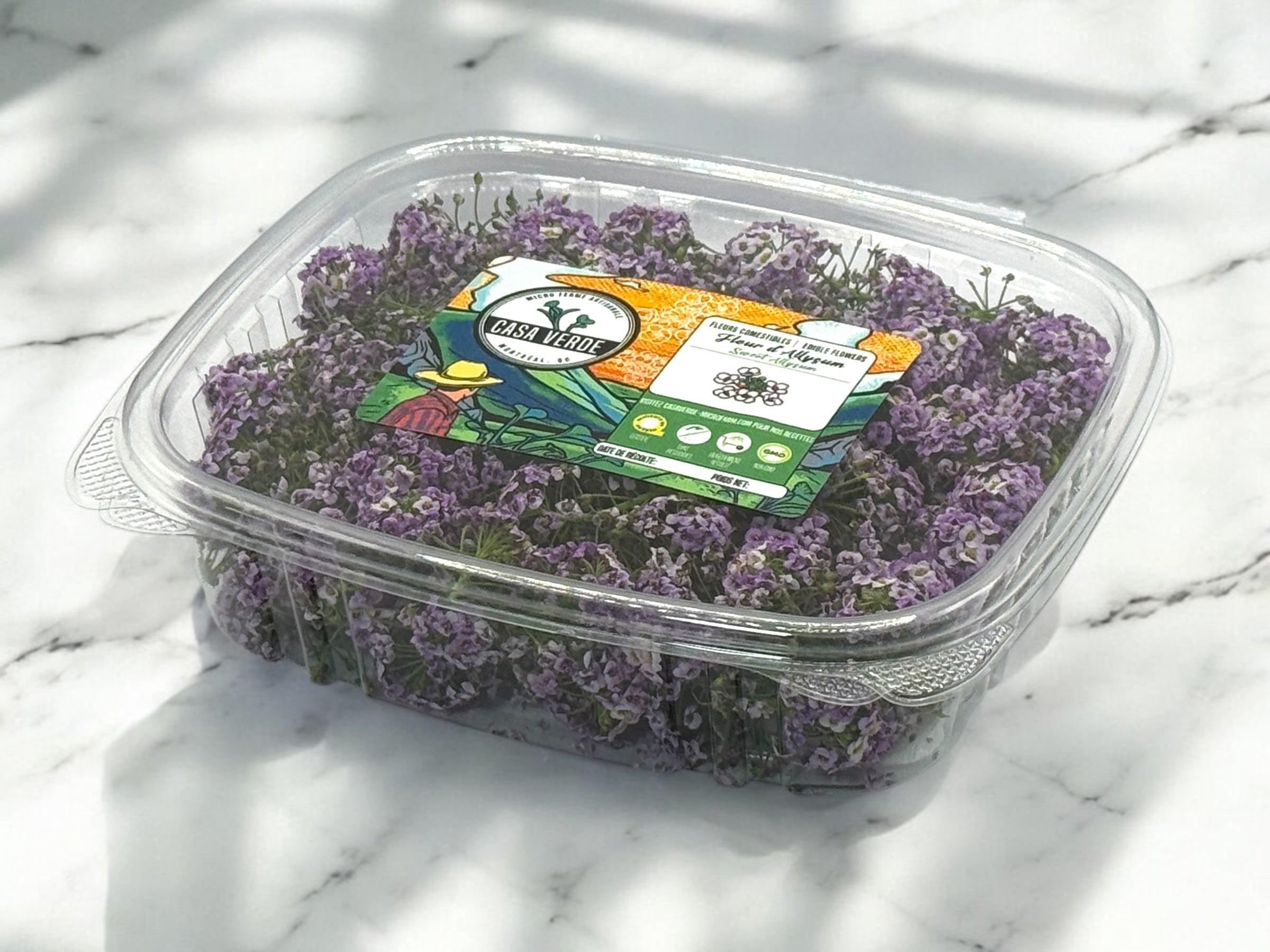 Préparez-vous à accueillir un nouvel ingrédient des plus charmants dans votre palette culinaire ! Nos fleurs d’alysse odorante sont de minuscules fleurs délicates, semblables à de la dentelle, qui offrent une saveur étonnamment douce et raffinée. Cueillies à la main dans notre ferme verticale de Vaudreuil-Dorion , ces grappes délicates sont cultivées pour leur fraîcheur optimale et leur saveur intense, qualités essentielles recherchées par les plus grands chefs montréalais.