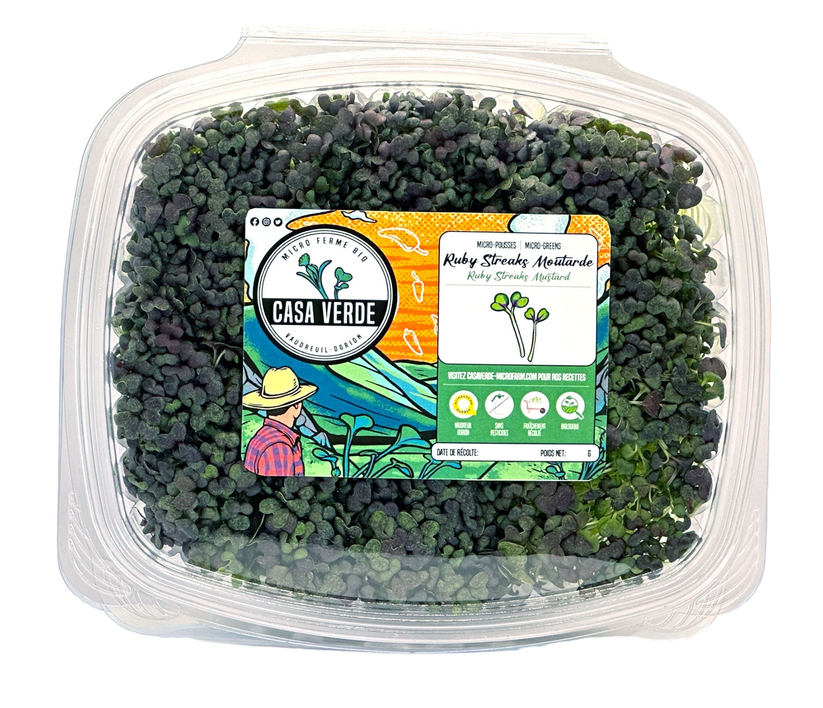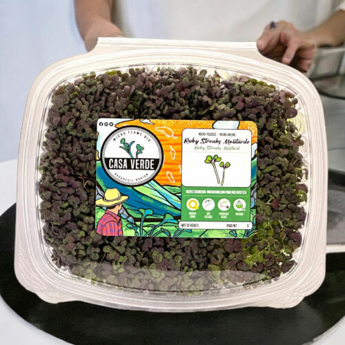 Chez Casa Verde Microfarm , nous cultivons les Ruby Streaks sous un éclairage contrôlé afin d'intensifier la coloration violette et d'équilibrer la chaleur naturelle de la moutarde, tout en conservant des feuilles tendres et prêtes à être consommées.