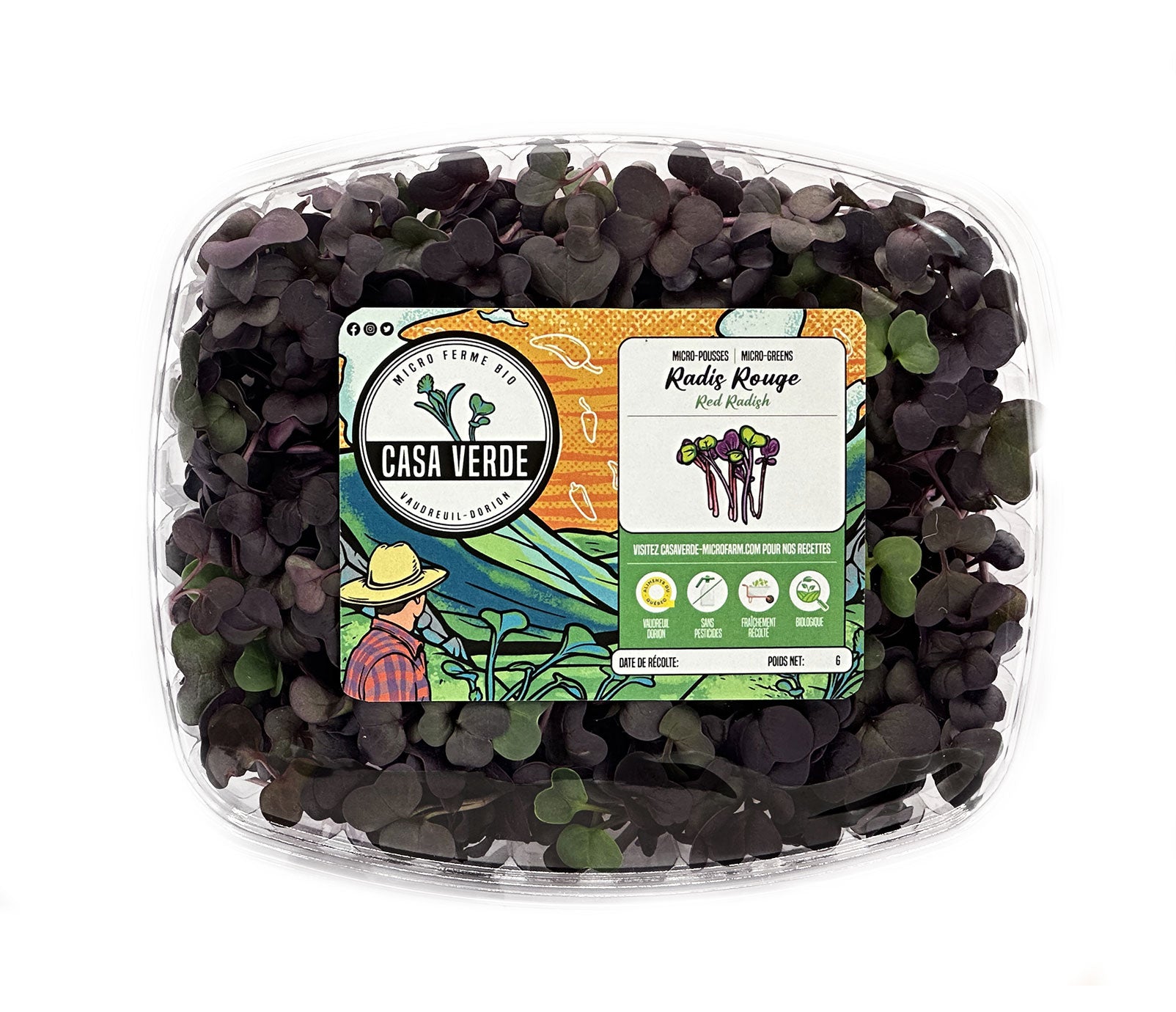 Croquantes, colorées et intensément épicées, les micro-pousses de radis rouge de Casa Verde apportent de la luminosité, du croquant et une saveur de radis fraîche à toutes vos assiettes.